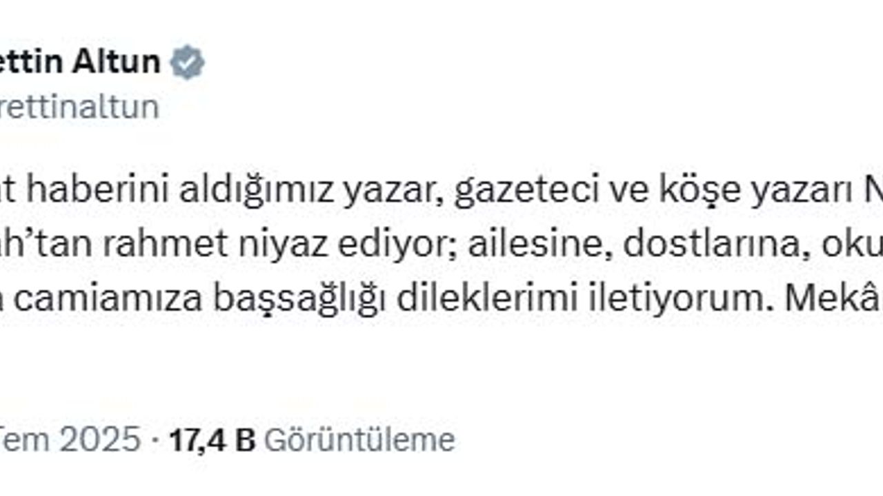 Gazeteci-yazar Nihat Genç, akciğer kanseri nedeniyle tedavi gördüğü Gazi Üniversitesi Hastanesi yoğun bakım servisinde bugün hayatını kaybetti. İletişim Başkanı Fahrettin Altun, Genç'in vefatı nedeniyle taziye mesajı yayımladı. Altun, "Bugün vefat haberini aldığımız yazar, gazeteci ve köşe yazarı Nihat Genç’e Allah’tan rahmet niyaz ediyor; ailesine, dostlarına, okurlarına ve tüm medya camiamıza başsağlığı dileklerimi iletiyorum. Mekanı cennet olsun" dedi.