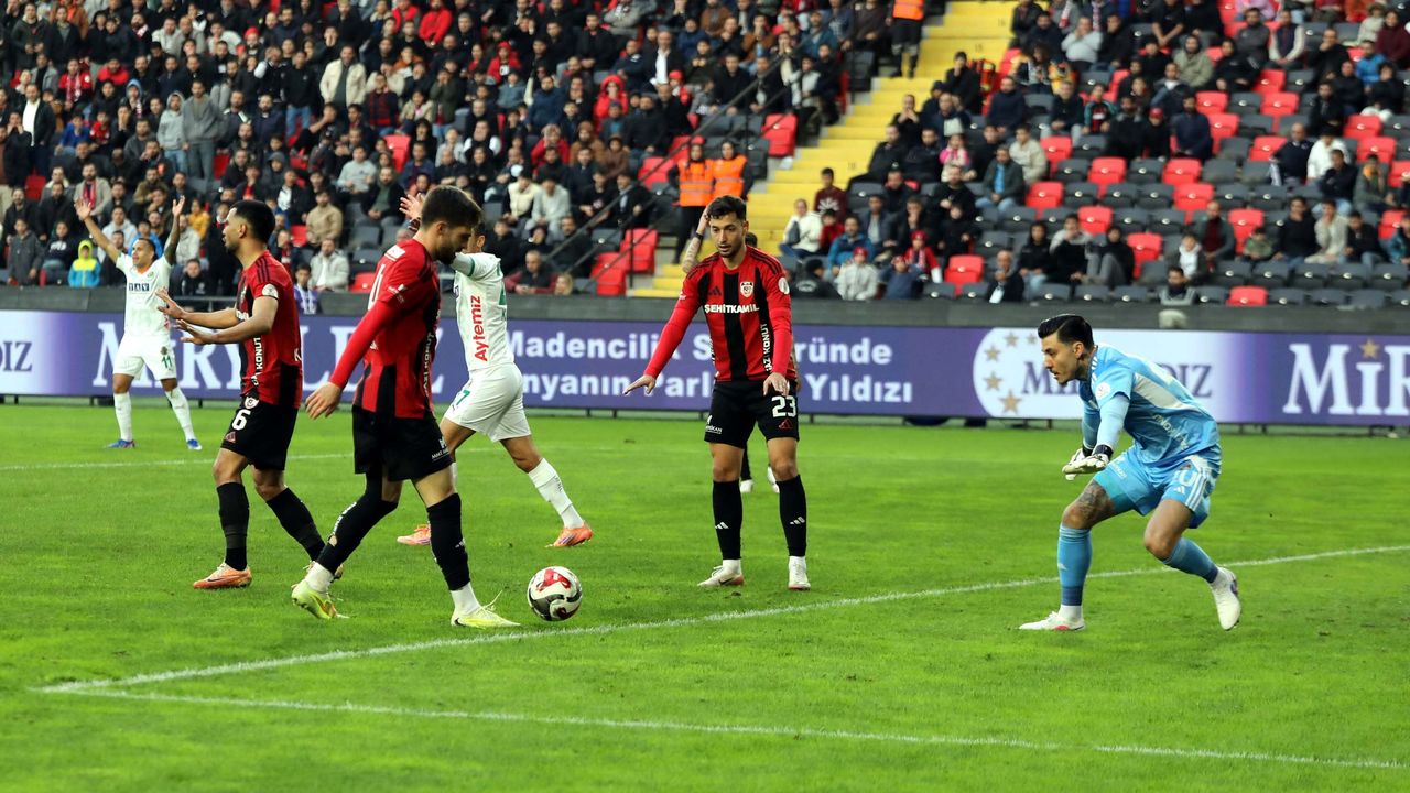 22'nci dakikada Gaziantep FK'da Maxim'in serbest vuruşunda karambolde seken topu Tayyip Talha'dan önce Alanyaspor savunması uzaklaştırdı.