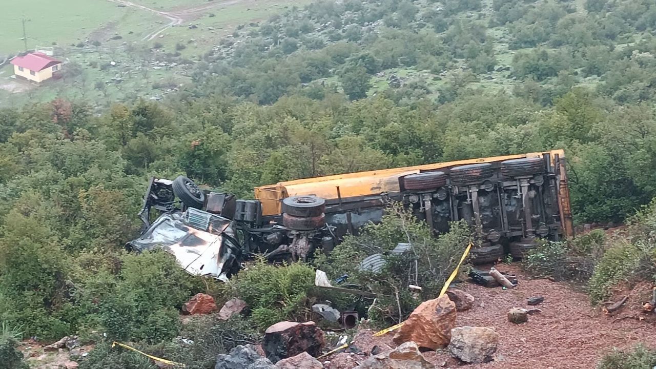 Kadir ÇELİK/ İSLAHİYE (Gaziantep), (DHA) - GAZİANTEP'in İslahiye ilçesinde uçuruma devrilip alev alan boksit madeni yüklü TIR'ın şoförü Yasin Soylu (25) hayatını kaybetti.
