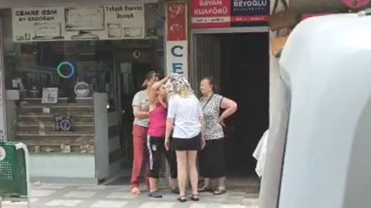 Bursa'nın Gemlik ilçesinde meydana gelen 4.3 büyüklüğündeki depremde, Eski Pazar Caddesi’ndeki bir iş hanındaki kuaför salonunun çalışanları ile müşterileri de panikle sokağa çıktı. Kadın kuaförünün, müşterisinin saçlarına kaldırım üstünde işlem yaptığı anlar cep telefonu kamerasıyla görüntülendi. (DHA)