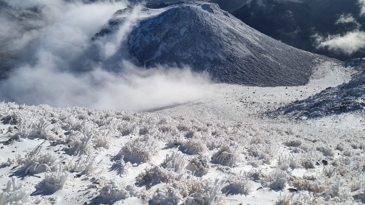 Erkan ALTUNTAŞ/ AKSARAY, (DHA)- AKSARAY’da havaların soğumasıyla 3 bin 268 rakımlı Hasan Dağı'nın zirvesine ilk kar düştü. Zirve karla kaplanırken, alt bölgelerde ise hava sıcaklığı hissedilir derecede düştü. Dağcı Ahmet Acun ile fotoğraf sanatçısı Ömer Yiğit, 5,5 saatlik zorlu yolculuğun ardından kar yığışı ile oluşan kartpostallık manzarayı görüntüledi.