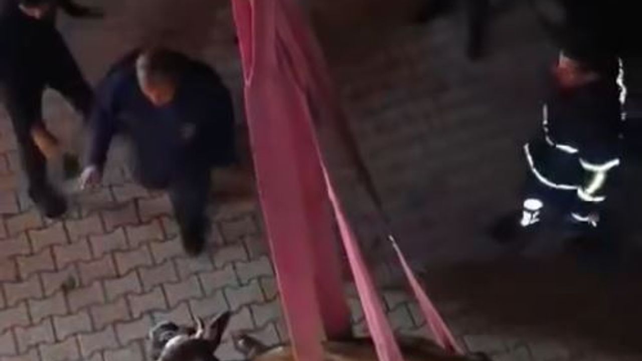 Hassa ilçesinin Girne Mahallesi’nde akşam saatlerinde bir evinin damına inek çıktığı görüldü. Durumu fark eden ev sahibi, itfaiye ekiplerini arayarak yardım istedi. bölgeye gelen itfaiye ekipleri, damda yakaladıkları ineği halatla vince bağlayarak yere indirdi. Damdan aşağı indirilen inek, sahibine teslim edildi.(DHA)