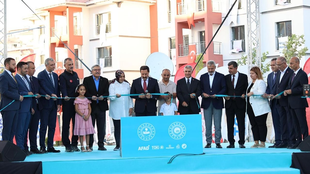 Kurada ismi çıkan vatandaşlar adına temsili olarak bazı ailelere protokol tarafından evlerinin anahtarları teslim edildi. (DHA)