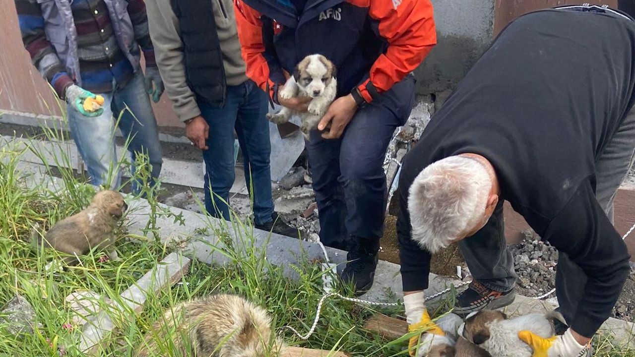 Bedir ALTUNOK/KARS, (DHA)- KARS'ın Arpaçay ilçesinde havalandırma boşluğunda mahsur kalan 6 köpek yavrusu, AFAD ekibinin çalışması ile kurtarıldı.