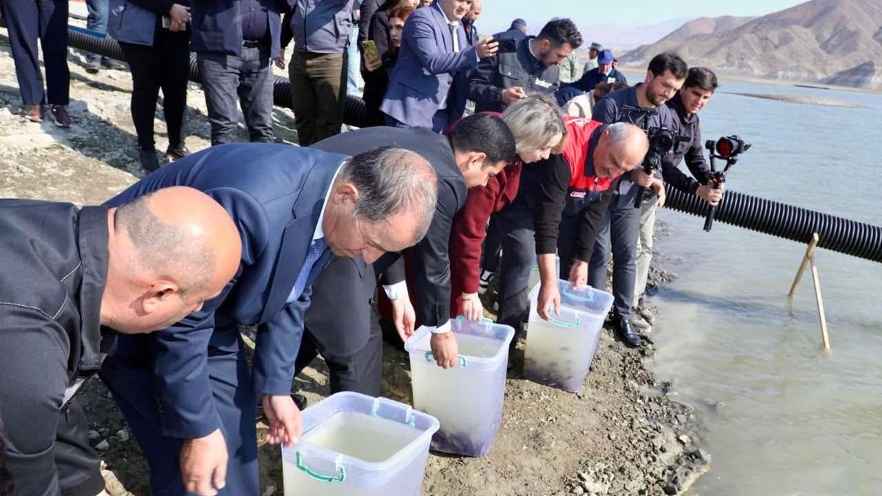 Tarım ve Orman Bakanlığı ile Nahçıvan Özerk Cumhuriyeti Ekoloji ve Doğal Kaynaklar Bakanlığı arasındaki iş birliği kapsamında, 300 bin sazan balığı yavrusu Nahçıvan’a hibe edildi. Sazan balığı yavruları, törenle Haydar Aliyev Göleti'ne bırakıldı. Törene her iki ülkenin ilgili kurum temsilcileri ve yetkililer katıldı. Nahçıvan'daki su kaynaklarının biyolojik çeşitliliğinin artırılması ve balık popülasyonunun güçlendirilmesinin hedeflendiği çalışmada; Türkiye ile Nahçıvan arasında çevre, ekoloji ve sürdürülebilir doğal kaynak yönetimi alanlarında iş birliği devam edecek. (DHA)