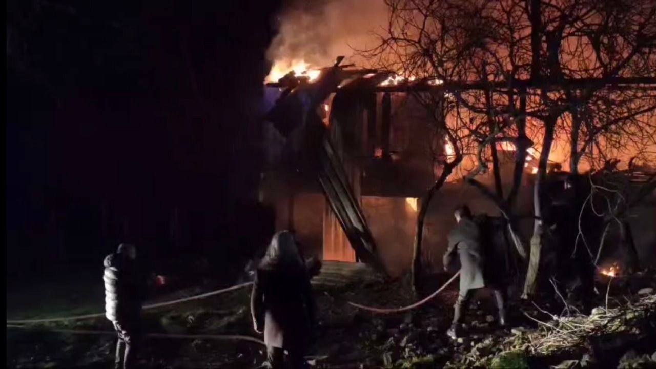 Murat ÖZELCİ/OVACIK(Karabük),(DHA)- KARABÜK'ün Ovacık ilçesinde 2 katlı ahşap evde çıkan yangın, itfaiye ekiplerince söndürülürken. Yangın nedeniyle ev, kullanılamaz hale geldi.