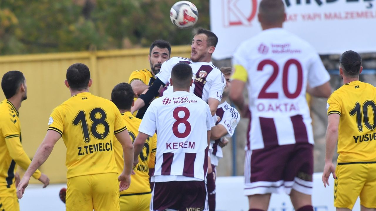 2’nci Lig Beyaz Grup 8’inci hafta karşılaşmasında İnegölspor, sahasında konuk ettiği Beykoz Anadolu Spor’u 3-1 yendi. (DHA)