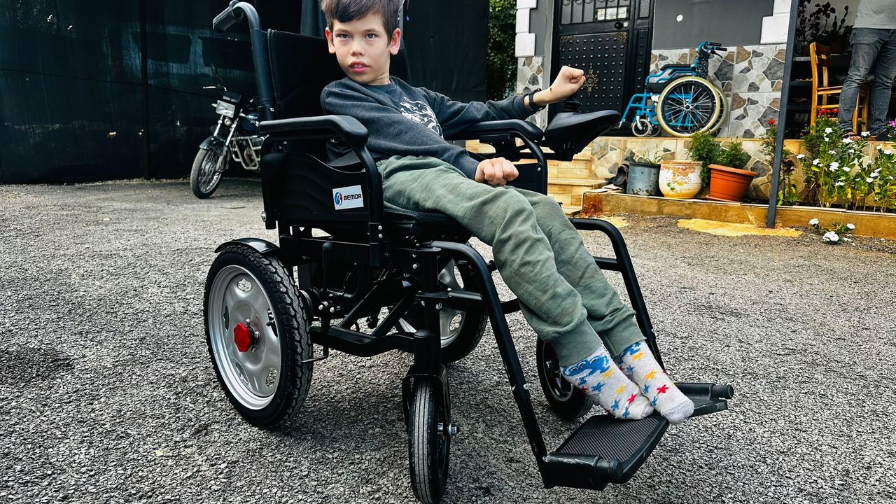 Mehmet DOĞANER/ERDEMLİ (Mersin) (DHA)- MERSİN'in Erdemli ilçesinde, doğum sırasında beyne oksijen gitmediği için yürüme ve el fonksiyonlarını kaybeden İsmail Kasap (12), yıllardır hayalini kurduğu akülü tekerlekli sandalyeye Demirören Haber Ajansı'nın (DHA) haberinin ardından kavuştu. Mersinli hayırsever iş insanı Vedat Saban, İsmail’in akülü tekerlekli sandalyesini temin ederek aileye teslim etti.