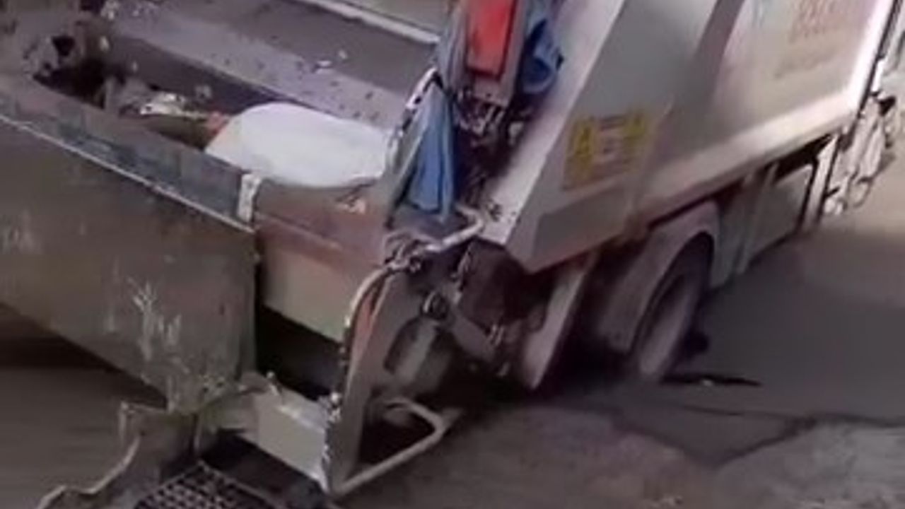 Olay, saat 15.00 sıralarında Yeni Sahra Mahallesi, Koç Caddesi'nde meydana geldi. Ataşehir Belediyesi'ne ait çöp kamyonu yolun çökmesi üzerine oluşan çukura düştü. Cadde trafiğe kapanırken kamyon olay yerine gelen çekiciyle kurtarıldı. Çevredekiler yaşananları cep telefonu kamerasıyla kaydetti. (DHA)