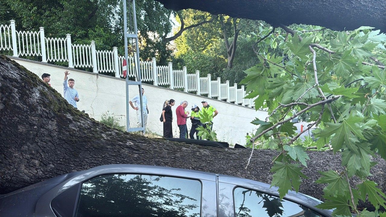 Aracı hasar gören Ömer Bakacak, "Aracım park halindeydi. Dün akşam bırakmıştık. Altı çürümüş ağacın boşalmış. Ağacın tarihinin 150 yıllık diyorlar. Zamanında bu binada da oturdum baya eski bir ağaç. Ağacın altında gözüken 3 araç var" dedi. (DHA)