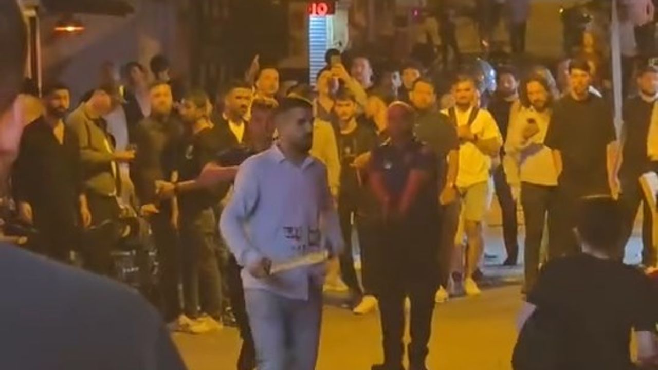 Olay, saat 02.30 sıralarında Beşiktaş Çarşısı'nda meydana geldi. Edinilen bilgiye göre; döner bıçağı ile kendisine zarar veren bir kişi, çevredekileri de tehdit etti. Çarşı esnafının ihbarı üzerine polis ekipleri olay yerine sevk edildi. Elindeki döner bıçağı bırakmayan şüpheliyi ikna edemeyen polis, silah çekerek tedbir aldı. Uzun süre sonra ikna edilen döner bıçaklı saldırgan gözaltına alınırken çevredekiler o anları cep telefon kamerasıyla kaydetti. (DHA)