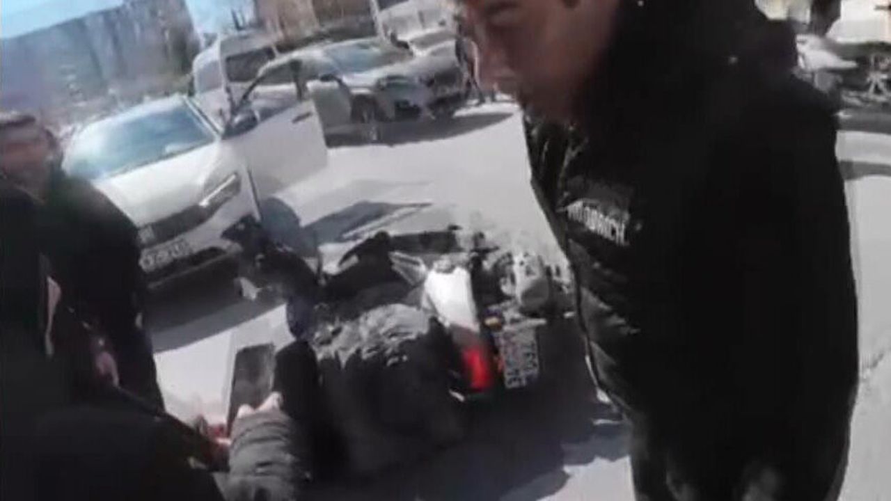 Sinirlenen otomobil sürücüsünü çevredekiler güçlükle durdurdu. Yanındaki kadına telefonu otomobilden getirmesini isteyen sürücü, 'Şunun plakası al. Telefonu getir buraya.. Şu plakayı çek. Bana gel gel yapıyorsun değil mi? Ara Fatih ağabeyi. İşleme soksunlar bunu. Sen bana hareket mi yapıyorsun. Sen başını belaya soktun. Sen bilirsin. Bana gel gel yapıyorsun' dedi. Yaşanan kavga kask kamerasına yansıdı.(DHA)
