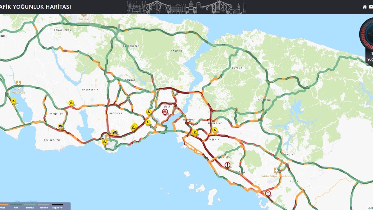 İstanbul'da akşam saatlerinde trafik yoğunluğu oluştu. İstanbul Büyükşehir Belediyesi Trafik Yoğunluğu Haritası verilerine göre saat 19.00 itibariyle yoğunluk yüzde 85'e ulaştı. Kentteki ana arterlerde trafik durma noktasına geldi. D-100 Karayolu’nun Sefaköy Mevkii'nde araçların güçlükle ilerlediği görüldü. (DHA)