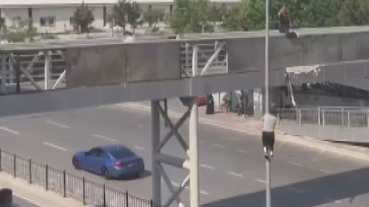 Olay Kartal D-100 Karayolu üzerinde meydana geldi. Üst geçide çıkan bir kişi Ankara istikametindeki elektrik direğine atladı. Direğe tutunan genç, kayarak yola indi. Yaşananlar çevredeki bir kişi tarafından cep telefonu ile kaydedildi.