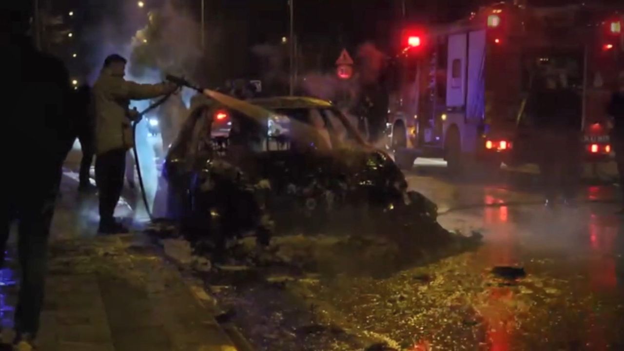 Yangın, saat 23.00 sıralarında Atakent Mahallesinde seyir halinde bulunan otomobilde çıktı. İddiaya göre, 1. Cadde üzerinde seyir halindeki otomobil, motor kısmından alev alarak yanmaya başladı. Durumu fark eden sürücü, aracı durdurarak aşağı indi. Alevler kısa sürede tüm otomobili sararken, ihbar üzerine olay yerine itfaiye ve polis ekipleri sevk edildi. Polis ekipleri, çevrede güvenlik önlemi alırken, itfaiye ekipleri yangını kısa sürede söndürdü. Yangında ölen ya da yaralanan olmazken, otomobil metal yığınına döndü. Öte yandan otomobilde çıkan yangın ve sonrasında yaşanan patlama, çevredekiler tarafından cep telefonu ile kaydedildi. Polis ekipleri, yangınla ilgili inceleme başlattı. (DHA)