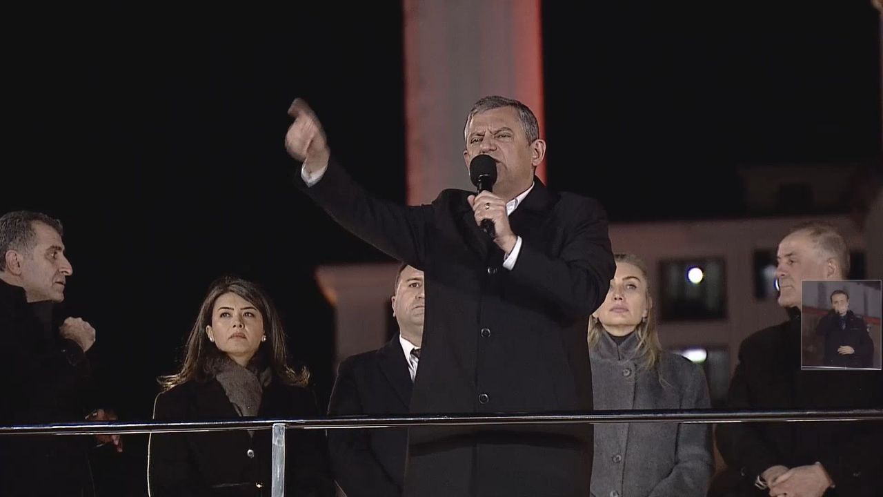Özel, 'Buradan Bağcılar'ın güzel insanlarına sesleniyorum. Canım insanlarına sesleniyorum. Geçmişte AK Parti'ye, MHP'ye oy verenlere sesleniyorum. Bu ülkenin Filistin meselesi milli meselesidir. Ulusal meselesidir. Filistin'de Netanyahu denilen katil, 71 bin masumun canına kıymışken, ona 'savaş kahramanı' diyen Trump, dünyadan 'Barış Kurulu kuruyorum' diye Gazze şeridine oteller dikmeye, Gazze şeridine kumarhaneler kurmaya, dünyanın casino merkezi yapmaya ve oraya Filistinli kardeşlerimizden almaya niyetlenmişken bu Erdoğan, güya Filistin hassasiyeti olan Erdoğan, Trump'a susmakta, teslim olmakta, Barış Kurulunu desteklemekte, oraya eleman vermekte, belki utanmadan kendisi de Trump'nıın yanına gitmeyi düşünmekte ve Gazze'yi satmaktadır. Biz Cumhuriyet Halk Partisi olarak, Bülent Ecevit'in Yaser Arafat'ın arkasında durduğu yer neresiyse tam olarak oradayız. Biz bu meydanı dolduranlar olarak, Deniz Gezmiş ve arkadaşları Filistin Kurtuluş Örgütü'ne nasıl destek verdiyse tam oradayız. Biz Filistin'in dostuyuz. Trump'ın dostu değiliz. Netanyahu'ya 'savaş kahramanı' diyen Trump'a ses çıkaramayan Erdoğan'a şunu söylüyoruz: Böyle boş meydanlarda çıkıp da boş boş 'Dünya beşten büyüktür' demekle olmaz. Trump'ın karşısına geçip 'Dünya senden büyüktür' demekle olur. 'Dünya senden büyüktür' demekle. Erdoğan'ın zamanında 'dostum Pedro Sánchez' dediği, bizim Sosyalist Enternasyonel'deki başkanımız, canımız, kardeşimiz, yoldaşımız Pedro Sánchez 'Ben Trump'ın barış planında yokum, Filistin'in olmadığı yerde Filistin'in geleceği konuşulamaz' dedi. Cumhuriyet Halk Partisi'nin de çizgisi Pedro Sánchez gibi Filistin'in yanında, İsrail'in karşısındadır. Erdoğan'a soruyorum 71 bin canın katiline 'savaş kahramanı' diyen adamdan Filistin'e ne fayda gelir? 71 bin çoğu kadın ve bebek katleden adamın sırtını sıvazlayan Trump'tan Filistin'e ne fayda gelir? O topraklara kumarhaneler yaptıran, beş yıldızlı oteller yaptıran, önündeki hidrokarbonlara çökmek için 50 tane takla atan Trump'ın oyununa alet olmamaya, o heyete girmemeye, o heyete kimseyi vermemeye, Filistin'i satmamaya davet ediyorum. Filistin'i sana sattırmayacağız' dedi.