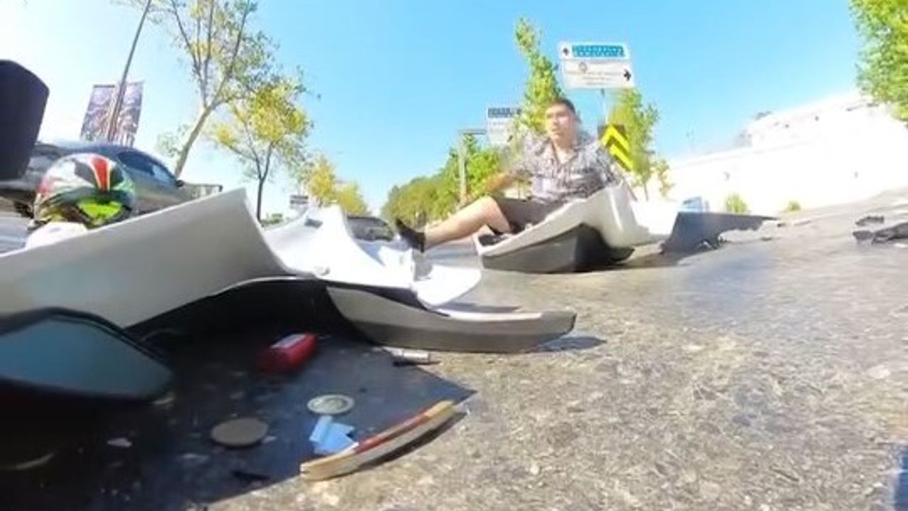 Kaza, 10 Ağustos saat 16.00 sıralarında Maslak Mahallesi Büyükdere Caddesi’nde meydana geldi. İddiaya göre, caddede ilerleyen motosiklet sürücüsü Emir S., aniden şerit değiştiren 34 GPV 826 plakalı otomobile arkadan çarptı. Kazanın etkisiyle yere savrulan Emir S. hafif şekilde yaralanırken otomobil sürücüsü olay yerinden kaçtı. İhbar üzerine olay yerine polis ve sağlık ekipleri sevk edildi. İlk müdahalesi olay yerinde yapılan sürücü tedbir amacıyla hastaneye götürüldü. Polis, kaçan sürücüyü yakalamak için çalışma başlattı. Kaza anı Emir S.'nin motosikletindeki kameraya saniye saniye yansırken polis, otomobil sürücüsünü yakalamak için çalışma başlattı. (DHA)