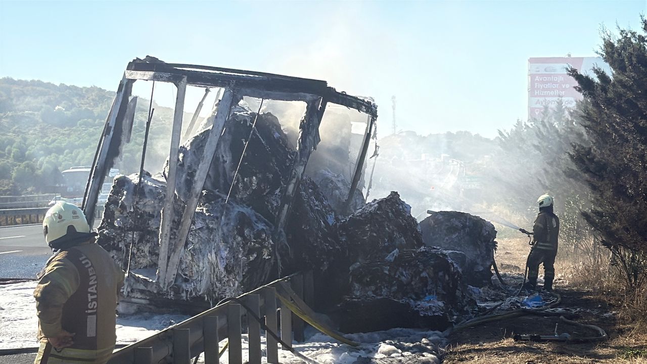 Yangın, saat 15.30 sıralarında Kuzey Marmara Otoyolu Uskumruköy mevkiinde seyir halinde olan TIR'ın dorsesinde çıktı. Edinilen bilgiye göre, 59 AJL 460 plakalı TIR'ın lastiklerinden çıkan kıvılcım, kağıt yüklü dorseye sıçradı. Dorseden dumanların yükseldiğini gören TIR şoförü aracını emniyet şeridinde durdurup çekici ile dorseyi ayırdı. Seyir halindeki diğer sürücülerin ihbarı üzerine olay yerine itfaiye, sağlık ve otoyol polisi ekibi sevk edildi. Ekipler tarafından otoyolun İstanbul Havalimanı-Edirne istikametinde iki şeridi trafiğe kapatılırken itfaiye ekipleri yangını kısa sürede söndürdü. Soğutma çalışmalarının ardından dorsenin kaldırılmasıyla trafiğe kapatılan şeritler açıldı. Ölen ya da yaralanan kimsenin olmadığı yangında küle dönen dorsenin alev alev yandığı anlar cep telefonu kameralarıyla kaydedildi. (DHA)