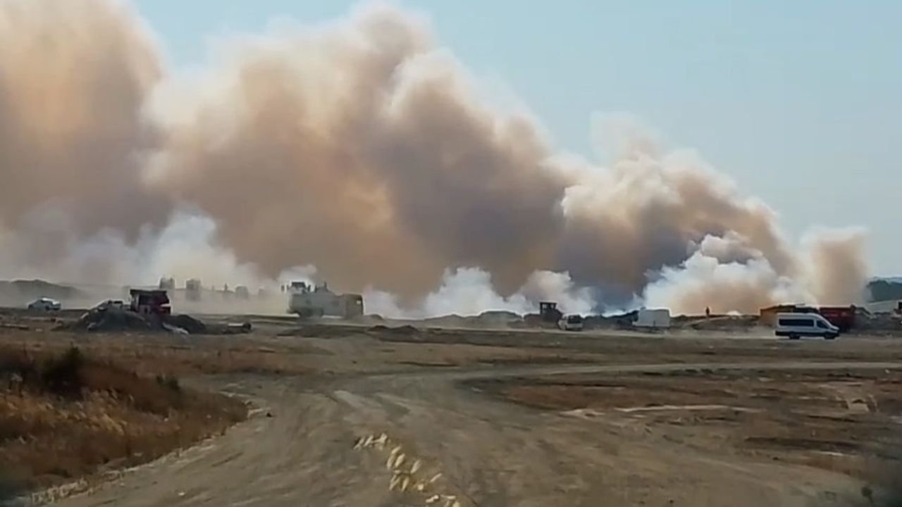 Yangın, Seymen Mahallesi'nde bulunan İstanbul Büyükşehir Belediyesi'ne (İBB) ait çöp döküm sahasında çıktı. Henüz bilinmeyen nedenle çıkan yangında alevleri fark edenler itfaiye ve polis ekiplerine haber verdi. İhbar üzerine olay yerine sevk edilen itfaiye ekiplerinin söndürme çalışması devam ederken belediye ekipleri de iş makineleri ve hafriyat kamyonlarıyla taşınan toprakları çöp yığınlarının üzerine dökerek çalışmalara destek veriyor. (DHA)