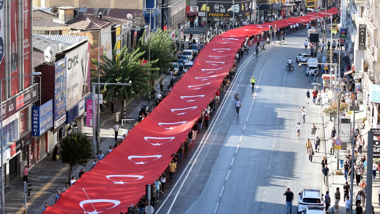 Anafartalar Caddesi ile Cumhuriyet Meydanı arasında geçen yürüyüşte 350 metrelik dev Türk bayrağı taşınırken, 7'den 70'e İzmirliler, yol kenarlarından da Türk bayrakları sallayıp, kentin kurtuluşunu kutladı.