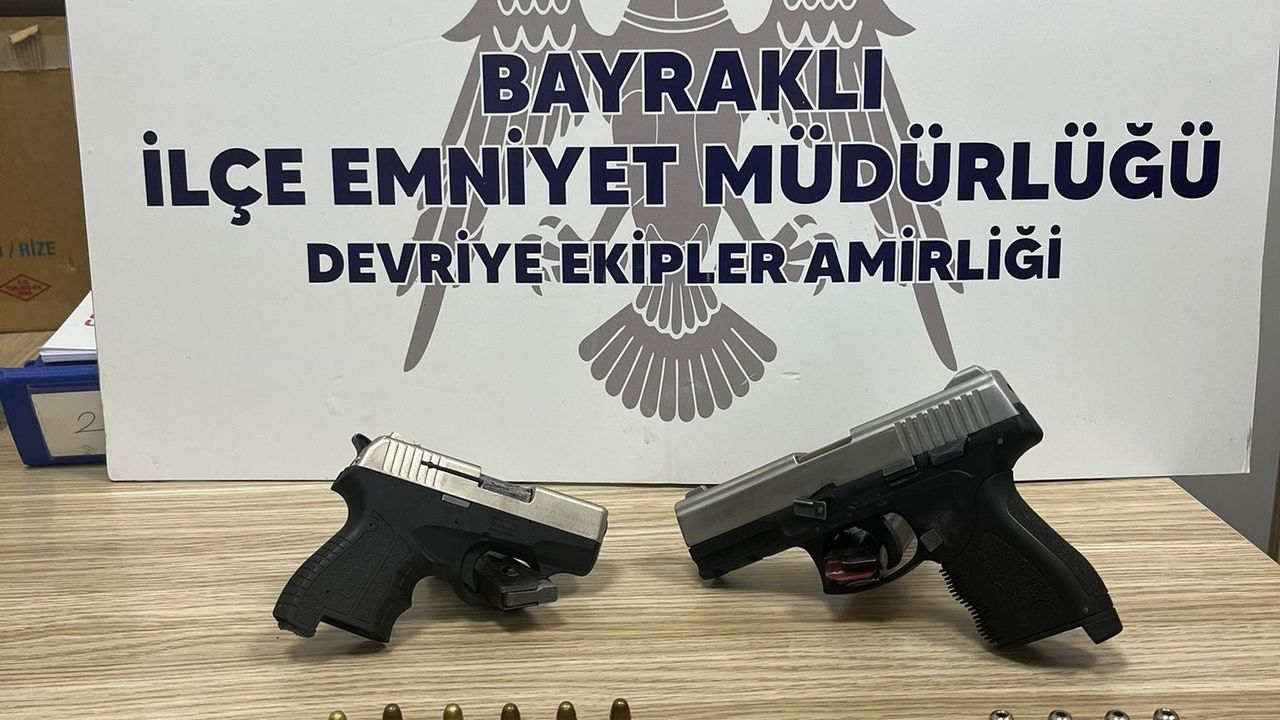Bayraklı İlçe Emniyet Müdürlüğü ekipleri, Adalet Mahallesi 1593/10 sokakta da bir kişinin çatı katından havaya rastgele ateş açtığı bilgisi üzerine yaptığı çalışmada şüphelinin B.Ç. olduğu belirlendi. B.Ç.’nın ateş ettiği evin arkadaşı Y.C.B.’ye ait olduğu belirlenince savcılık izni ile evde arama yapıldı. Aramada 2 bin 934 sentetik ecza hapı ve 1 tabanca ele geçirdi, 2 şüpheli gözaltına alındı.