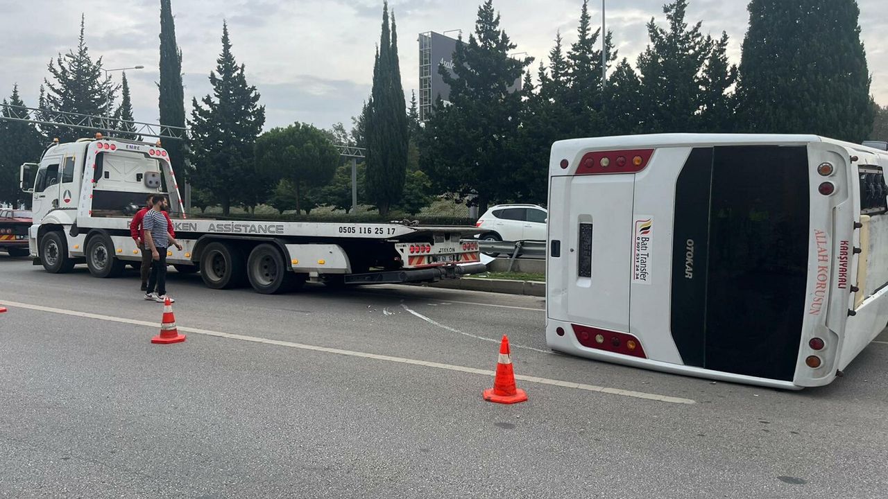 Tekin GÜRBULAK/İZMİR, (DHA)- İZMİR'in Gaziemir ilçesinde, havalimanı personelini taşıyan servis midibüsünün devrildiği kazada 5 kişi yaralandı.