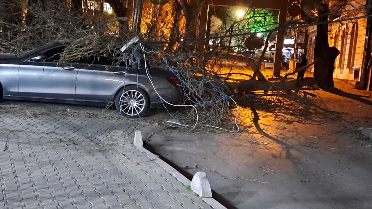 Mustafa İÇ/ İZMİR, (DHA)- İZMİR'in Bornova ilçesinde, şiddetli rüzgarın etkisiyle park halindeki bir otomobilin ve yakınlardaki bir düğün salonunun gelin odasının üzerine ağaç devrildi.
