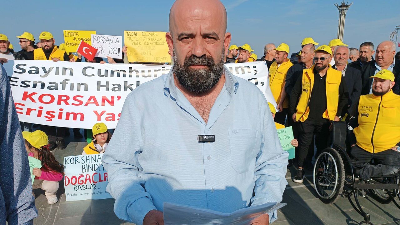 Taksici esnafı, sabah saatlerinde korsan taşımacılığa tepki göstermek için Alsancak Stadı önünde toplandı. Çok sayıda taksi şoförü, kornalarla Şehitler Caddesi'nden Liman Caddesi'ne, oradan da Cumhuriyet Meydanı'na konvoy yaptı. Araçlarına Türk bayrağı asan taksiciler, sahil şeridinde tek sıra halinde park edip kontak kapattı. 'Korsana dur deyin', 'Erişim yasağı istiyoruz', 'Emeğimize sahip çıkıyoruz', 'Sayın Cumhurbaşkanım esnafın hakkını koruyun' yazılı döviz ve pankartlar taşıyan topluluğa, aileleri de destek verdi.