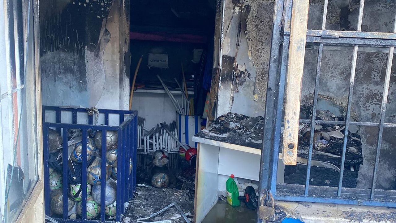 İZMİR,(DHA)- BÖLGESEL Amatör Lig 8'inci Grup'ta mücadele eden İzmir futbolunun köklü kulüplerinin İzmirspor'un tesislerinde yangın çıktı. Lacivert-beyazlılar, Osman Kibar Tesisleri'ndeki malzeme odasında henüz bilinmeyen bir nedenle çıkan yangının söndürüldüğünü ancak odanın büyük hasar aldığını açıkladı.