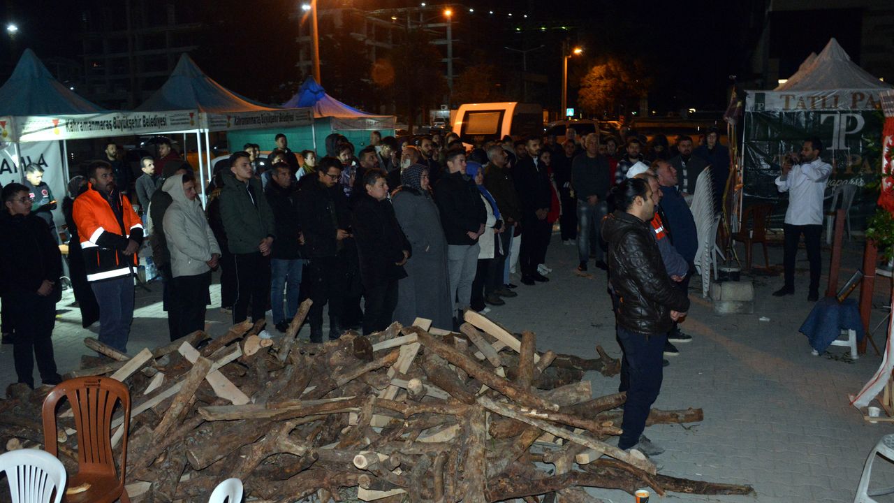 Sandalyelere bırakılan 04.17'de durmuş duvar saati ile büyük acının tarihi olan 6 Şubat'ın takvim yaprağının yer aldığı programda saatler 04.17'yi gösterdiğinde, depremde yakınlarını kaybedenler gözyaşlarına boğuldu. Tekbir ve salavatlar getiren depremzedeler, kaybettikleri yakınları için 1 dakikalık saygı duruşunda bulundu.