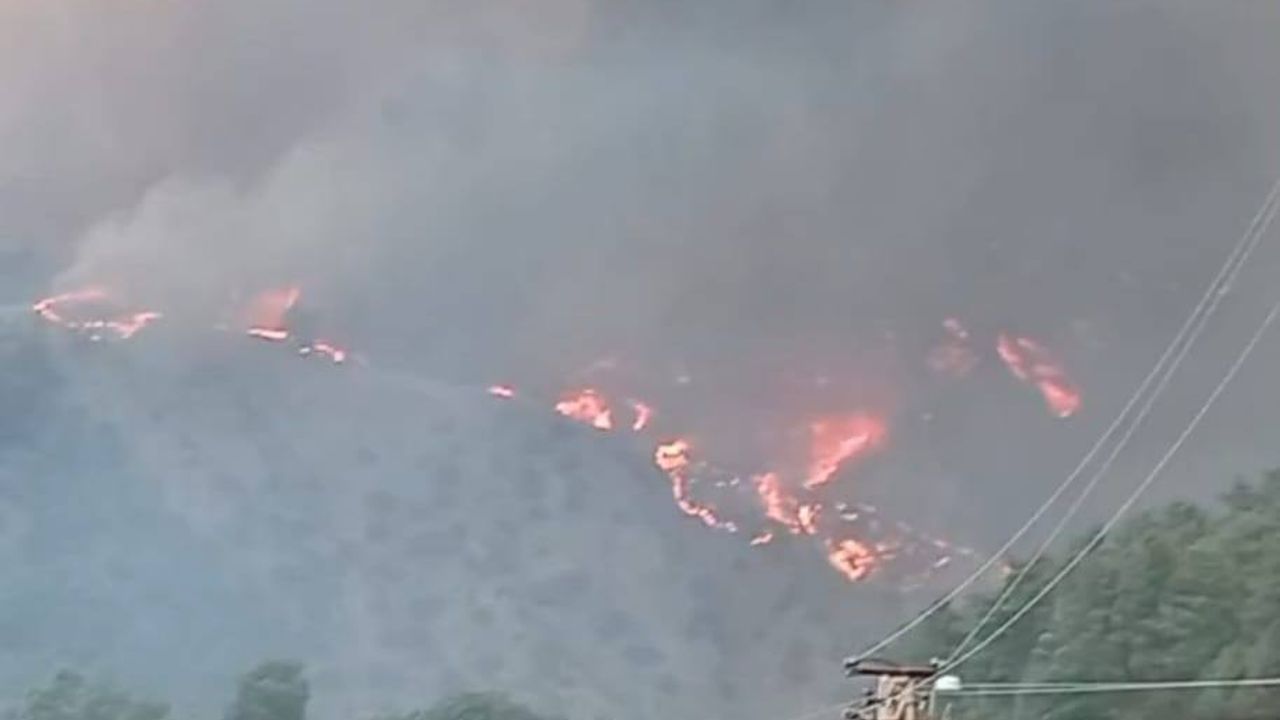 Ekipler yangını kontrol altına alabilmek için alevlere havdan ve karadan müdahale ediyor. (DHA)