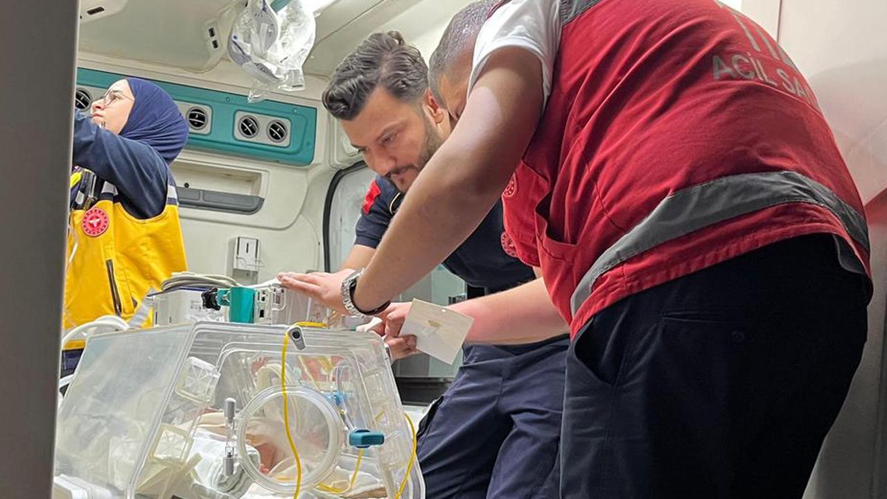 Muş Devlet Hastanesi'nde sezaryenle dünyaya gelen Selin bebeğe aort damarında daralma (aort koarktasyon) teşhisi konuldu. Hayati riski bulunan bebek, ileri tetkik ve tedavi amacıyla İstanbul Siyami Hersek Eğitim ve Araştırma Hastanesi Pediatrik Kalp Damar Cerrahisi Kliniği'ne sevk edildi. Sağlık Bakanlığı tarafından Muş'a gönderilen ambulans uçak, minik bebeği alarak İstanbul'a götürdü. (DHA)