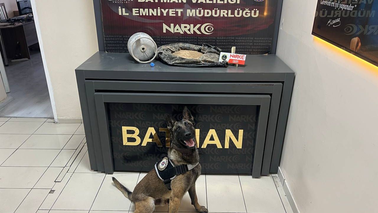 Bayram AYHAN/BATMAN, (DHA)- BATMAN’da, polis ekiplerinin durdurduğu bir kamyonda narkotik köpeği ‘Alfa’ ile yapılan aramada tüp içerisine gizlenmiş 2 kilo 900 gram eroin ele geçirildi.