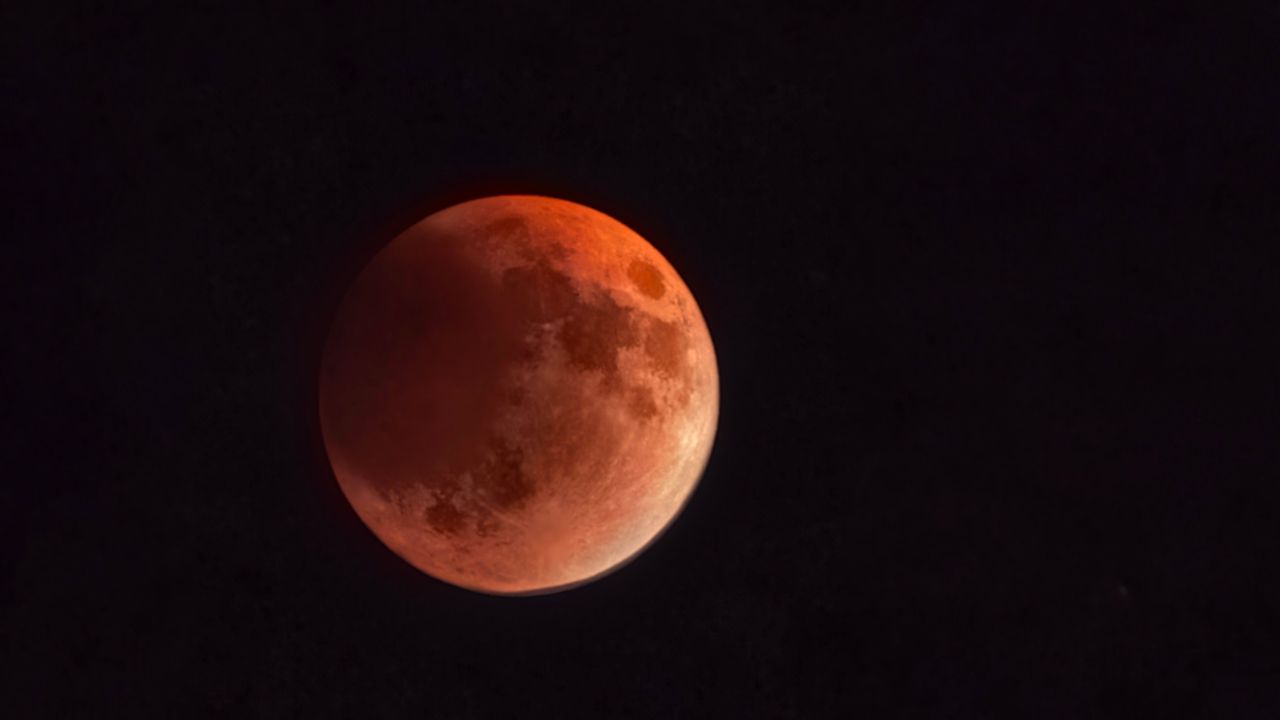Türkiye'nin birçok yerinden izlenen Kanlı Ay Tutulması, Van’da da net bir şekilde görüldü. Türkiye saati ile 19.15’te başlayan Kanlı Ay Tutulması, çıplak gözle izlendi. (DHA)