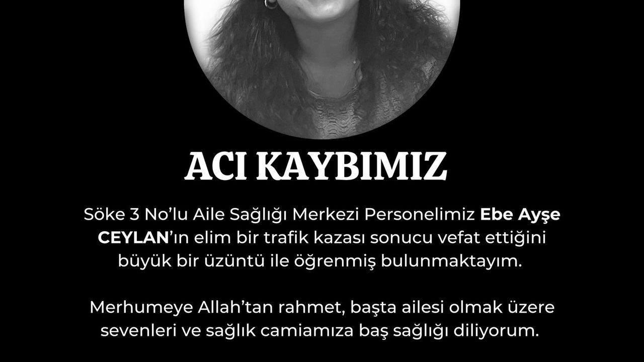Aydın İl Sağlık Müdürü Dr. Eser Şenkul sosyal medya hesabından yaptığı açıklamada, “Söke 3 No’lu Aile Sağlığı Merkezi personelimiz Ebe Ayşe Ceylan'ın elim bir trafik kazası sonucu vefat ettiğini öğrenmiş bulunmaktayım. Merhumeye Allah’tan rahmet, başta ailesi olmak üzere sevenleri ve sağlık camiamıza başsağlığı diliyorum” ifadelerine yer verdi.