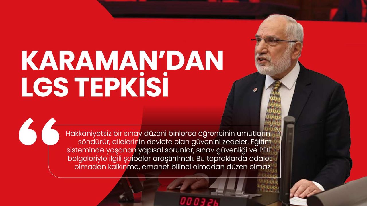 Sınav sonuçlarının ve istatistiklerin şeffaf şekilde paylaşılmasını isteyen Karaman, sınav uygulamalarındaki olası usulsüzlüklere ilişkin derhal adım atılması gerektiğini vurguladı. Siyasi polemiklere girilmemesi çağrısında bulundu.