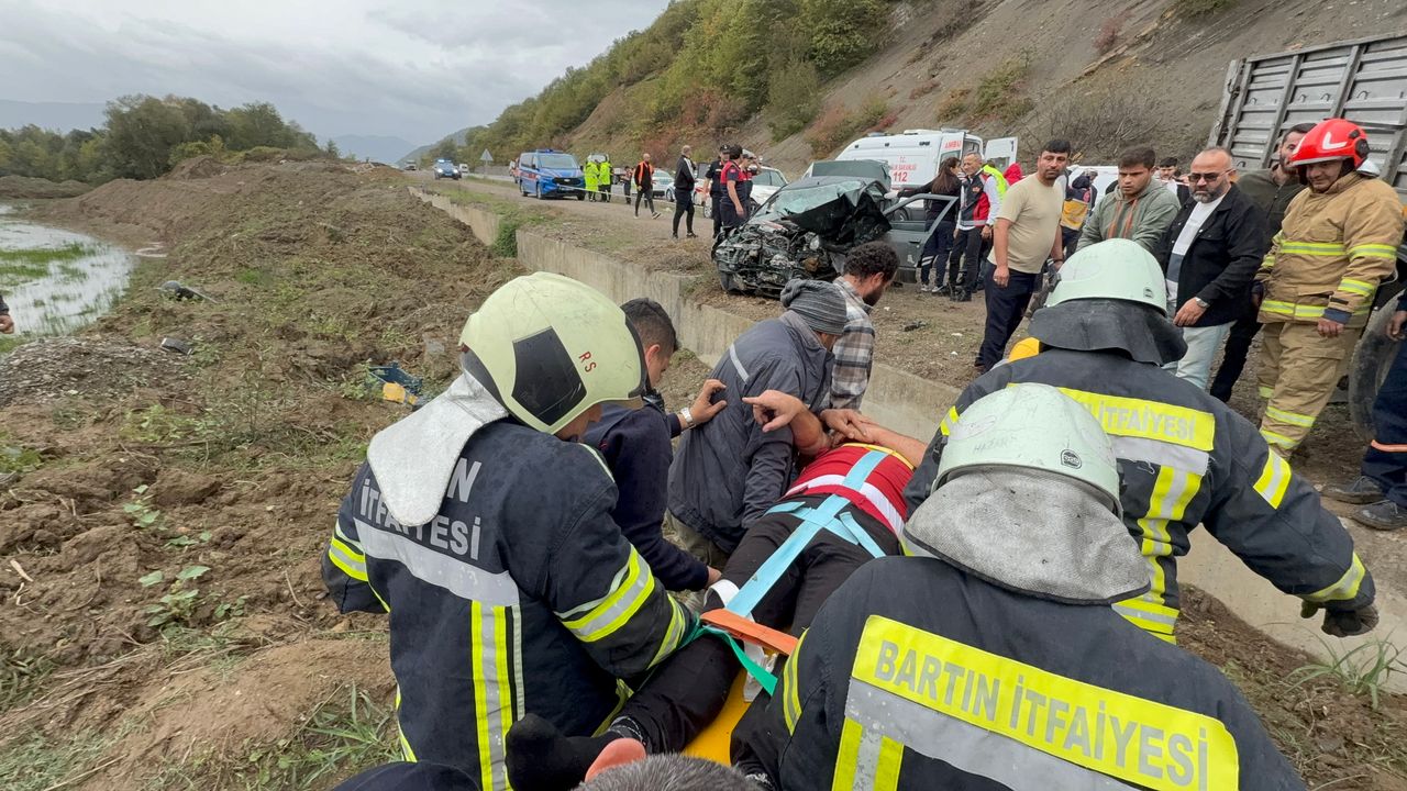 Ayhan ACAR/BARTIN, (DHA)- BARTIN’da karşı şeride geçen TIR ile çarpışan otomobildeki Satı (66) ve Sevil Üncan (60) çifti yaşamını yitirdi. Yaralanan TIR şoförü Hakan Demir (45) ise hastaneye kaldırıldı.
