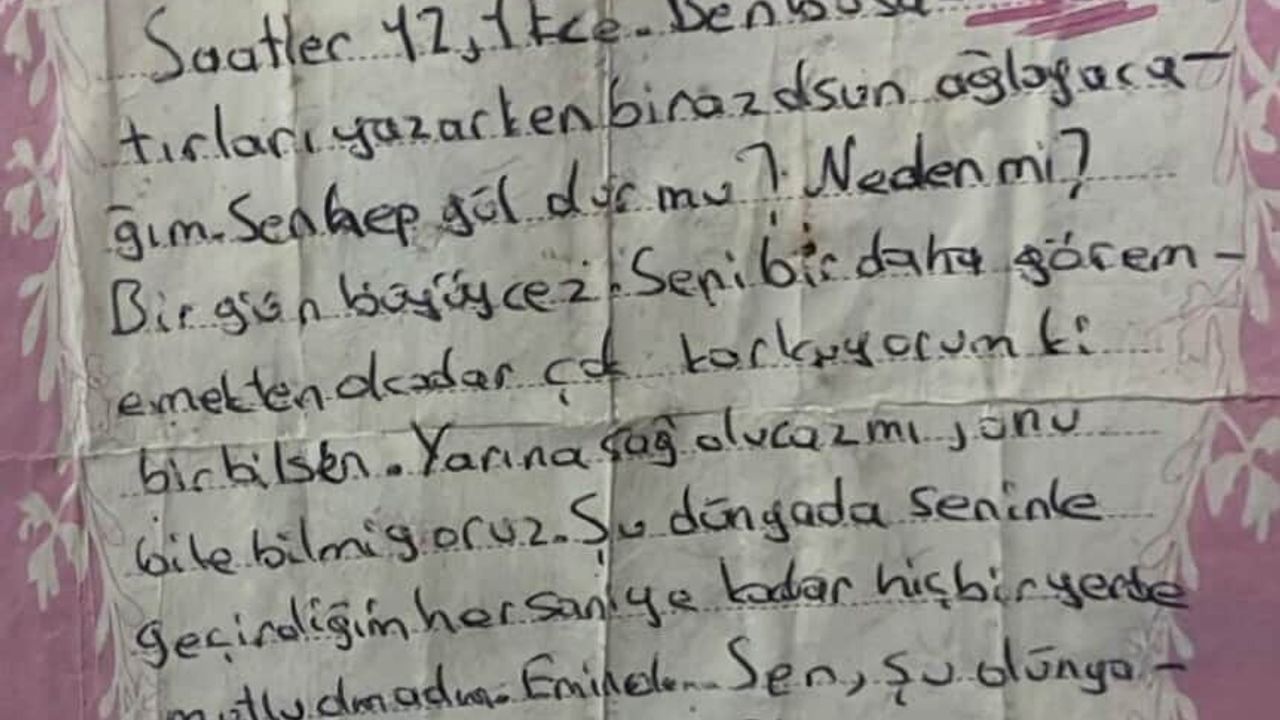 'Saatler 12.01 Ece. Ben bu satırları yazarken biraz olsun ağlayacağım. Sen hep gül olur mu? Bir gün büyüyeceğiz. Seni bir daha görememekten o kadar çok korkuyorum ki bir bilsen. Yarına sağ olacak mıyız onu bile bilmiyoruz. Belki beni unutursun ama ben seni kalbimde taşıyacağım.' (DHA)