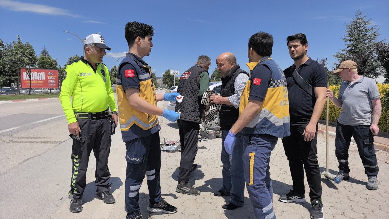 Yavuz YILMAZ/İNEGÖL (Bursa), (DHA)- BURSA'nın İnegöl ilçesinde otomobil ile çarpışan elektrikli bisikletin sürücüsü yaralandı. Parçalanan bisikletini bırakmamak için ambulansa binmek istemeyen yaralıyı ekipler ikna etti.