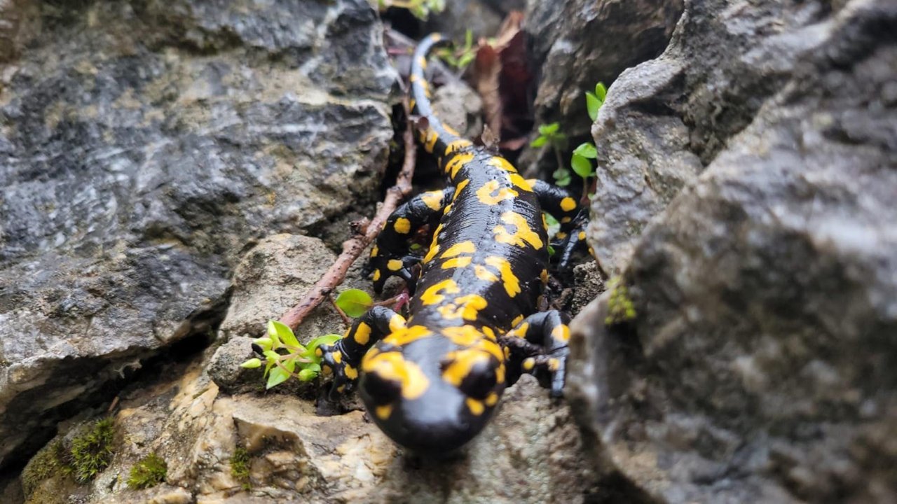 Kemaliye'de doğa fotoğrafı çekmek için araziye çıkan vatandaşlar, nesli yok olma tehlikesi ile karşı karşıya kaldığı için koruma altında bulunan 'benekli semenderler' gördü. Vatandaşlar, semenderi, kamerayla kayıt altına alındı. (DHA)