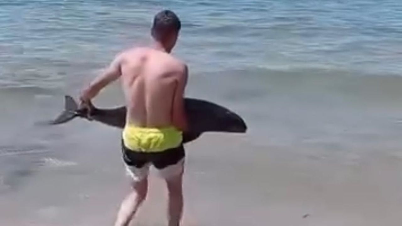 Dün akşam saatlerinde Amasra Bozköy plajında olan bazı kişiler, yavru bir yunusun kıyıya vurduğunu gördü. Çevredekilerden biri yunusu kucağına alıp, karaya çıkardı. Yapılan incelemede yunusun kuyruk kısmında küçük bir yara olduğu belirlendi ve yeniden denize bırakıldı. O anlar cep telefonuyla görüntülendi. (DHA)