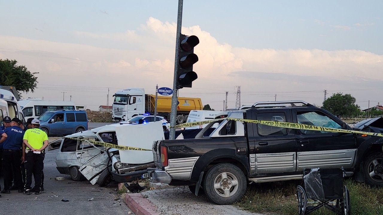 Kaza, saat 18.00 sıralarında merkez Meram ilçesi Gödene Mahallesi Hatunsaray Caddesi ile Memleket Caddesi Kavşağı'nda meydana geldi. Kadir Yıldız idaresindeki 42 Y 5492 plakalı otomobil ile Ali Başişçi’nin kullandığı 34 AP 6806 plakalı kamyonet kavşakta çarpıştı. Araçlar, çarpışmanın etkisiyle yol kenarındaki arazide park halindeki kamyona çarparak durdu. Kazayı görenlerin ihbarı üzerine olay yerine sağlık ve polis ekipleri sevk edildi. Olay yerine gelen sağlık ekipleri otomobilde bulunan Fatma Yıldız’ın olay yerinde öldüğünü belirledi. Ağır yaralanan eşi Kadir Yıldız ise ambulansla Meram Devlet Hastanesi’ne sevk edildi. Kamyonette bulunan sürücü Ali Başişçi, Durmuş Başişçi, Mümine Feride Başişçi ve Zeycan Karaağaç da, ambulanslarla Konya Şehir Hastanesi’ne götürüldü. Ağır yaralanan Sürücü Kadir Yıldız, yapılan müdahaleye rağmen kurtarılamayarak hayatını kaybetti. Çiftin cenazeleri otopsi için Konya Adli Tıp Kurumuna götürülürken, polis kazayla ilgili inceleme başlattı. (DHA)