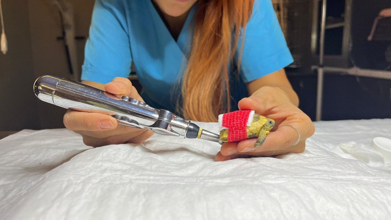 Gizem CENGİL-Samet ÖKSÜZ/ANKARA, (DHA)- ANKARA'da köpeğin ısırması sonucu yaralanan yavru kaplumbağa Kivi, klinikte tedavi altına alındı.