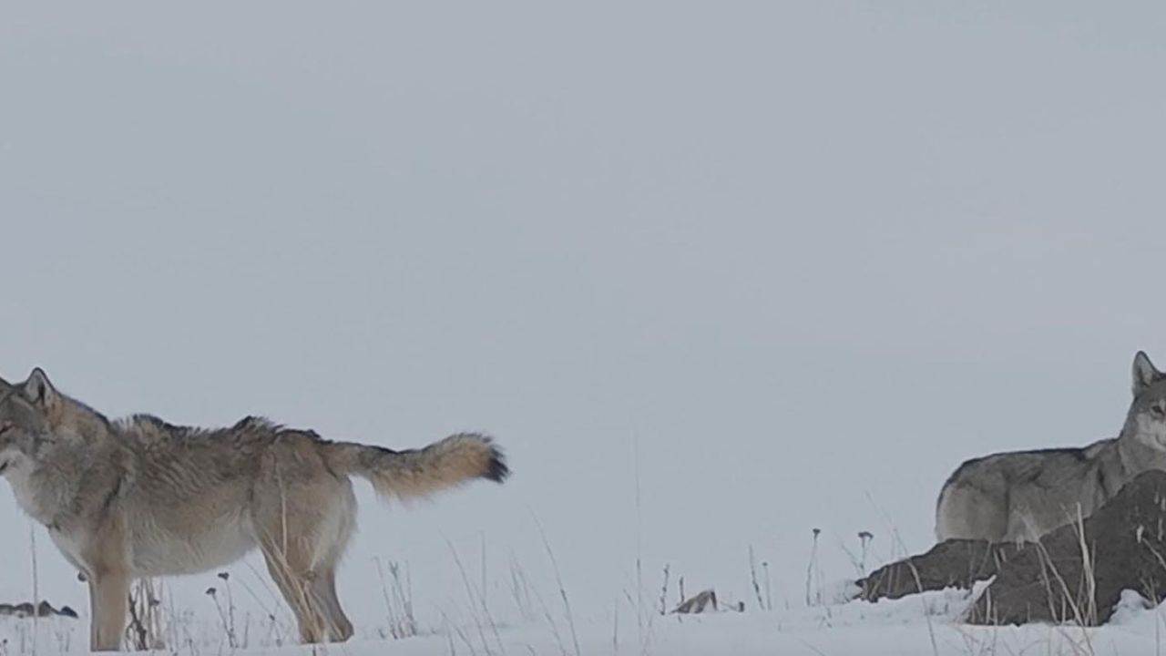 Dinçer AKTEMUR/ARDAHAN, (DHA)- ARDAHAN'ın Göle ilçesinde, etkili olan yoğun kar yağışı nedeniyle doğada yiyecek bulmakta zorlanınca köye inen kurtlar, dronla görüntülendi.