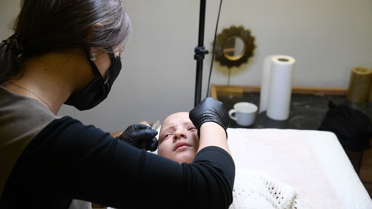 İbrahim EMÜL/OSMANİYE, (DHA)- OSMANİYE'de kirpik, kaş ve saçları dökülen Aysima İlengiz’e (8) kalıcı makyajla kaş yapıldı. Osmaniye Belediye Başkanı İbrahim Çenet'in desteğiyle yapılan kaşın ardından dökülen saç ve kirpikleri için tedavi arayışına girilen Aysima, "23 Nisan Çocuk Bayramı'ndan önce kaşlarıma kavuştum, çok mutluyum" dedi.