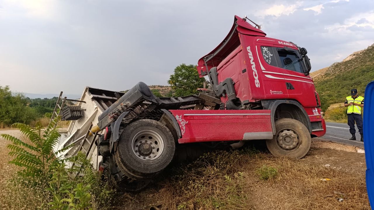 Kaza, İnegöl-Yenişehir yolu Boğazköy Mahallesi mevkisinde meydana geldi. İnegöl'den Yenişehir'deki Yüksek Hızlı Tren (YHT) inşaatına kum taşıyan Alper A. (47) yönetimindeki 08 AAB 173 plakalı TIR, yağış nedeniyle kayganlaşan yolda sürücüsünün direksiyon hakimiyetini kaybetmesiyle yoldan çıkarak devrildi. Yaralanan sürücü, çevredekiler tarafından TIR'dan çıkarılırken, ihbarla olay yerine jandarma ve sağlık ekipleri sevk edildi. Yaralılar, ambulansla kaldırıldığı İnegöl Devlet Hastanesi'nde tedaviye alındı. Sürücünün durumunun iyi olduğu öğrenilirken, kazayla ilgili soruşturma başlatıldı. (DHA)