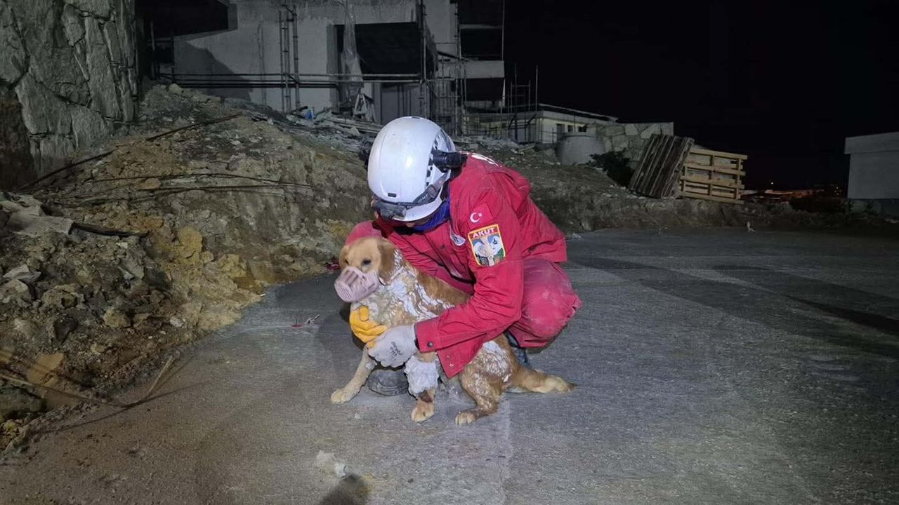 Oğuzhan BOYSAN/KUŞADASI (Aydın), (DHA)-AYDIN'ın Kuşadası ilçesinde inşaat sahasına dökülüp, kuruyan betonda mahsur kalan 'Paris' isimli köpek, itfaiye ve Arama Kurtarma Derneği (AKUT) ekiplerince 7 saat süren çalışma ile kurtarıldı.