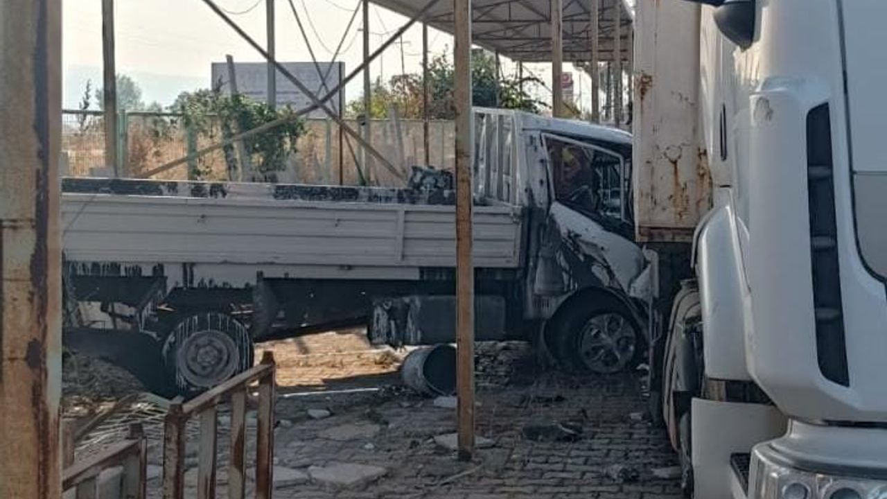 Yavuz YILMAZ/İNEGÖL (Bursa), (DHA)-BURSA'nın İnegöl ilçesinde lastiği patlayan kamyonet, fabrikanın demir korkuluklarını aşıp, bahçedeki TIR'a çarparak durdu. Kazada sürücü ile yanındaki kişi yaralandı.