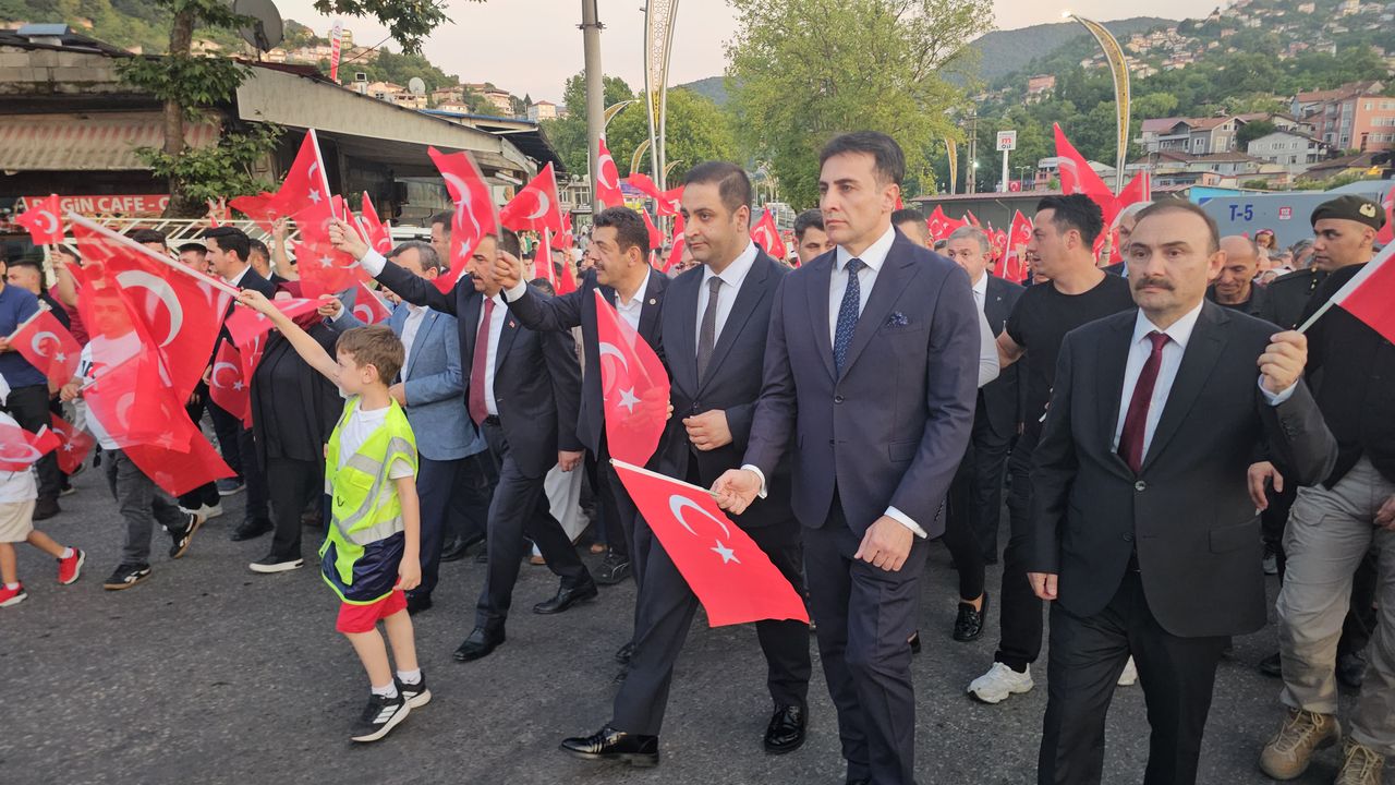 15 Temmuz 2016’da FETÖ’nün kalkıştığı hain darbe girişiminin 9’uncu yılında Zonguldak’ta demokrasi nöbeti için program düzenlendi. İstasyon Caddesi’nde Vali Osman Hacıbektaşoğlu ile il protokolü öncülüğünde katılımcılar Mehter Marşı eşliğinde Madenci Anıtı’na yürüdü. Burada saygı duruşu ve İstiklal Marşı okunmasıyla program başladı. Türkiye Taşkömürü Kurumu’nda çalışan maden işçileri de iş kıyafeti ve baretleriyle alana gelerek ‘demokrasi nöbeti’ tuttu. Etkinlik, sela, dua, konser ve konuşmalarla devam etti. (DHA)