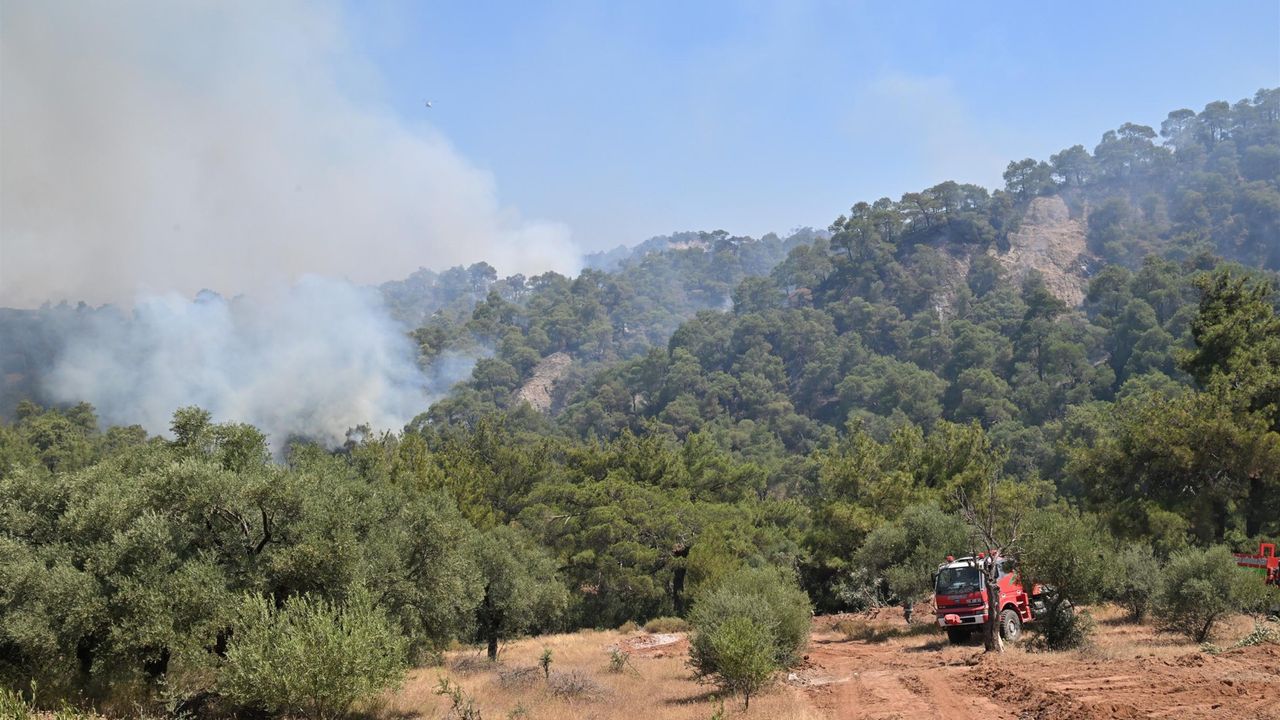 Manisa Valisi Vahdettin Özkan, Ahmetli ilçesi Dereköy Mahallesi'ndeki orman yangınına yönelik yürütülen söndürme çalışmalarını yerinde inceledi. Yangının yayılma riskine karşı alınan önlemleri ve söndürme çalışmalarını alanda yetkililerle değerlendiren Özkan, "İlimizde devam eden orman yangınlarını söndürmek için yoğun bir mücadele yürütülüyor. Tüm ekiplerimizle koordineli bir şekilde sahadayız. İlimizde devam etmekte olan Akhisar, Ahmetli, Kula ve son olarak bugün başlayan Saruhanlı orman yangınlarının kontrol altına alınması için Tarım ve Orman Bakanlığımızın koordinasyonunda yoğun bir mücadele yürütüyoruz. Vatandaşlarımızın can güvenliği önceliğimizdir" diye konuştu.
